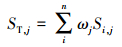 式中, Yi,min和Yi,max分別為第i個變量m個響應值中的最小值和最大值.歸一化后的響應值再乘以每個變量的權(quán)重, 加和得出各組試驗的響應值, 即: